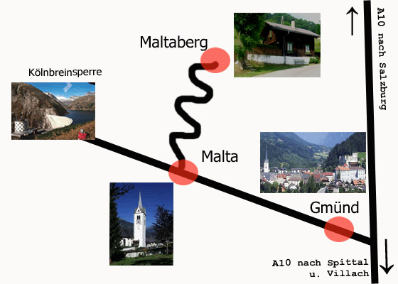 Nach der Autobahnabfahrt Gmünd fahren Sie 6 km entlang der Bundesstraße Richtung Malta.